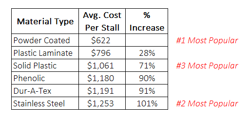 Plastic Laminate: Around $796 per stall. (28% premium)