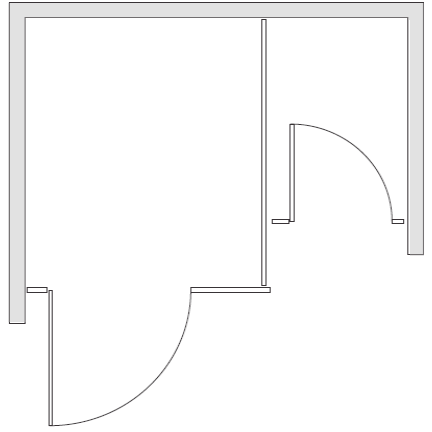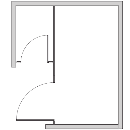 The most common bathroom stall layouts are “In Corner Left” and “In Corner Right”.