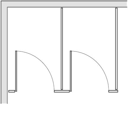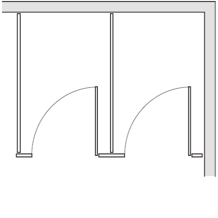 Freestanding layout has stalls that have no wall on either side. This layout is rarely requested.